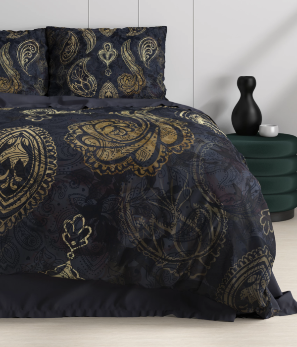 Et vidunderligt behageligt dynebetræk med et luksuriøst look. Bagsiden har en ensfarvet blå farve. Dynebetrækket lukkes med de praktiske trykknapper. Pudebetræk har hotellukning med 15 cm flap.